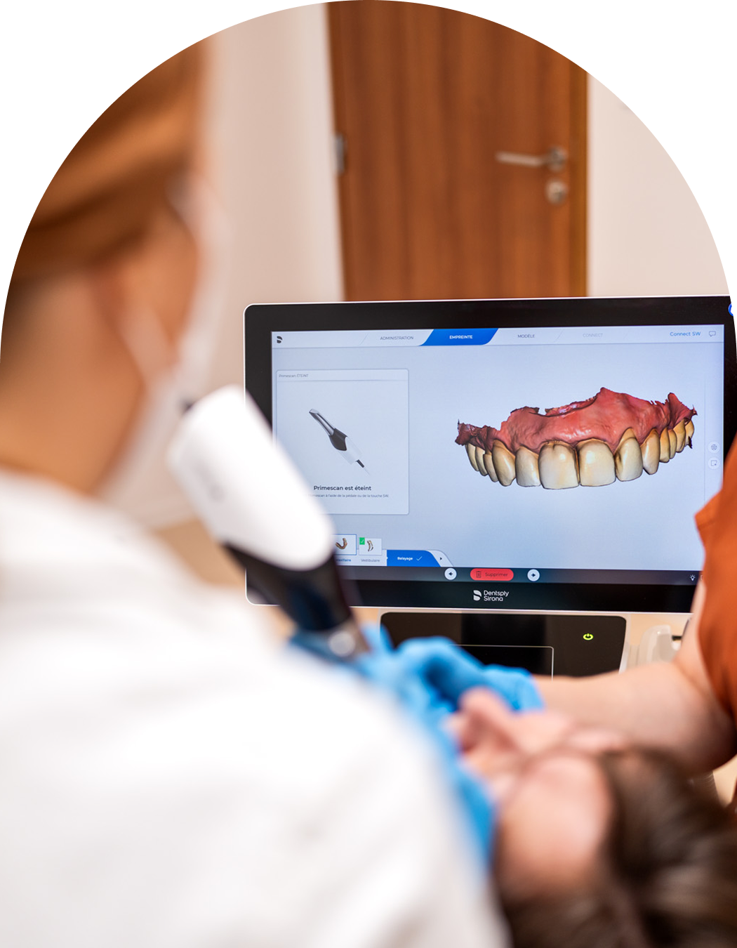 Une caméra scanne vos dents sans pâte, pour une empreinte confortable et très précise. Idéal pour créer des restaurations parfaitement adaptées.